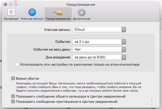 Если вы пользуетесь компьютером Mac, то можете подписаться на календарь мероприятий во встроенном приложении «Календарь». Для этого вам нужно открыть приложение и выбрать пункт Файл -> Новая подписка календаря (⌥⌘S). В открывшемся окне вставьте ссылку подписки iCal и нажмите подписаться. Если вы хотите, чтобы этот календарь появился на других ваших Apple-устройствах в размещении выберите iCloud (по умолчанию). Обратите внимание, что по умолчанию календарь обновляется раз в неделю. Мы рекомендуем изменить это значение как минимум на 1 день, а лучше — чаще. Готово, теперь в календаре вашего Mac будут появляться мероприятия наших сообществ. Ссылку для подписки на календарь вы найдете в предыдущей инструкции. Вы также можете настроить уведомления для календаря, чтобы получать оповещения за определенное время для мероприятия. Для этого зайдите в Настройки (⌘,) -> Предупреждения. В пункте «События» выберите подходящий вам вариант.